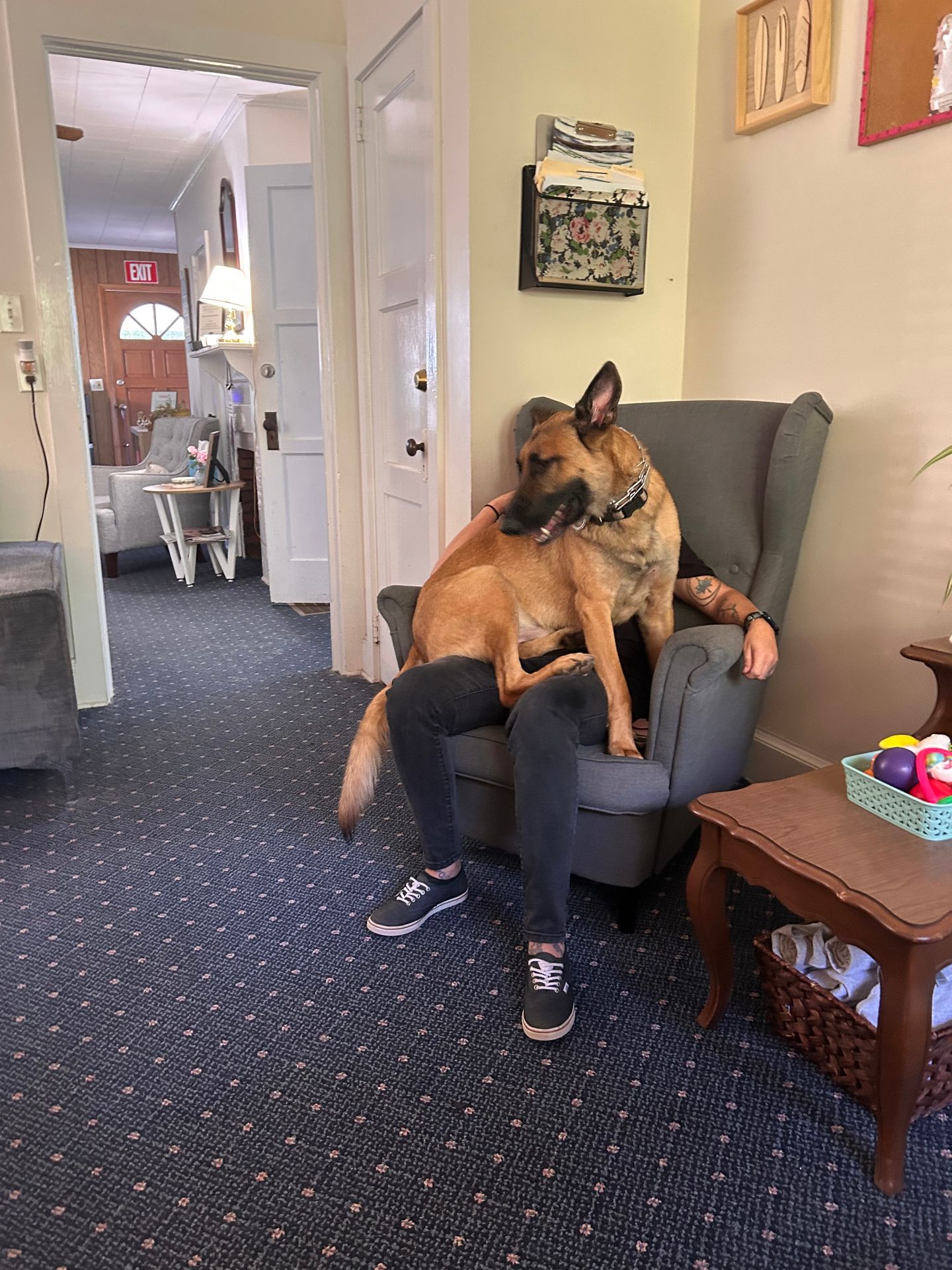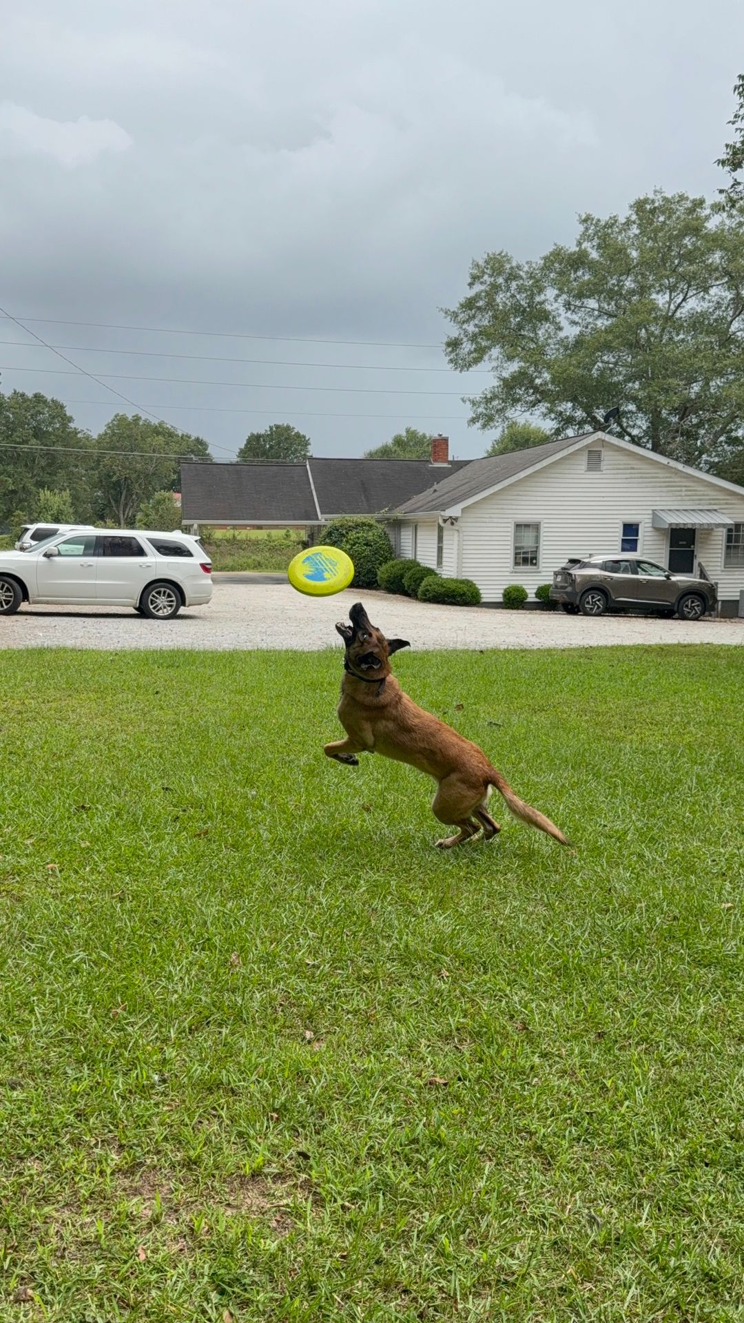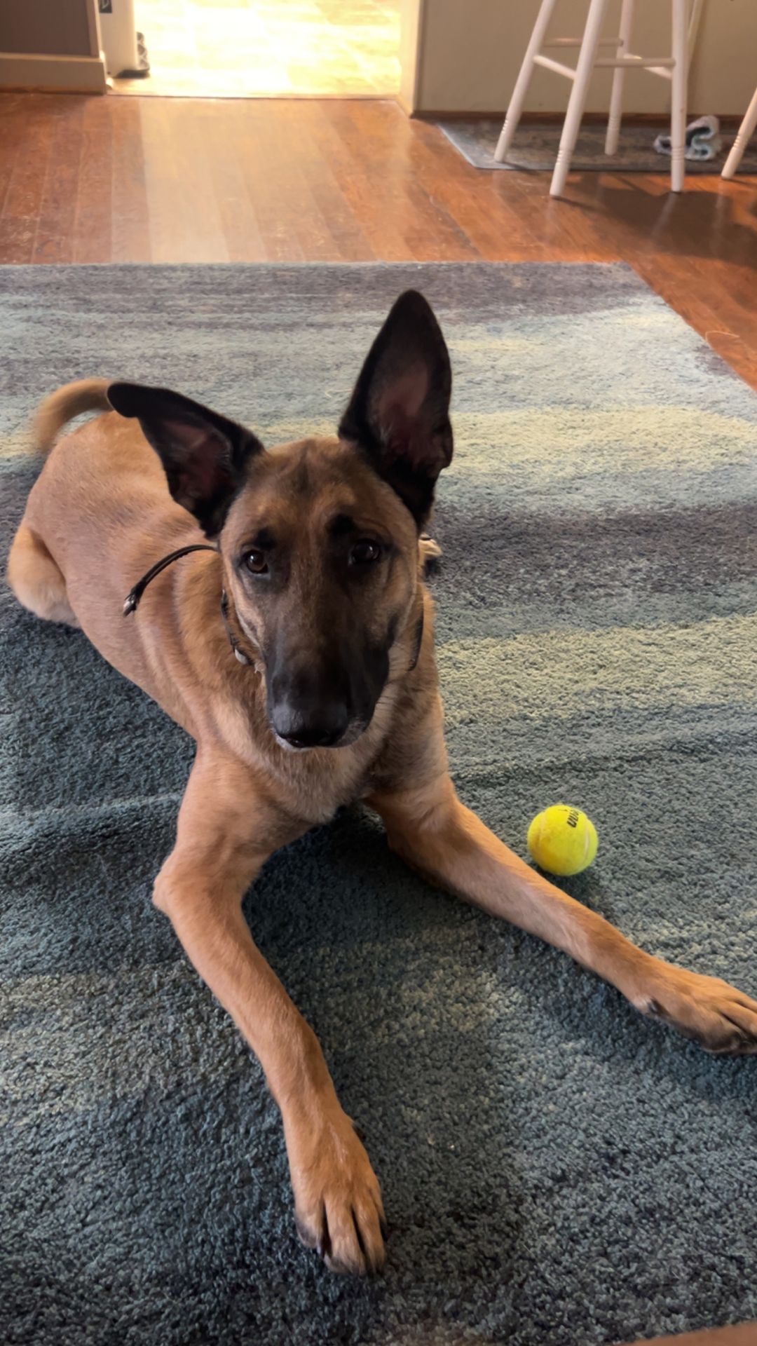 Deuce is a Belgian Malinois who doesn't know a stranger. He is hyper and impulsive which makes him great with children who struggle with hyperactivity and impulsivity. He loves to play fetch, and is a little obsessive when it comes to balls. He enjoys playing fetch and performing a variety of tasks like sit, down, roll-over and handsome boy. Treats are a favorite.