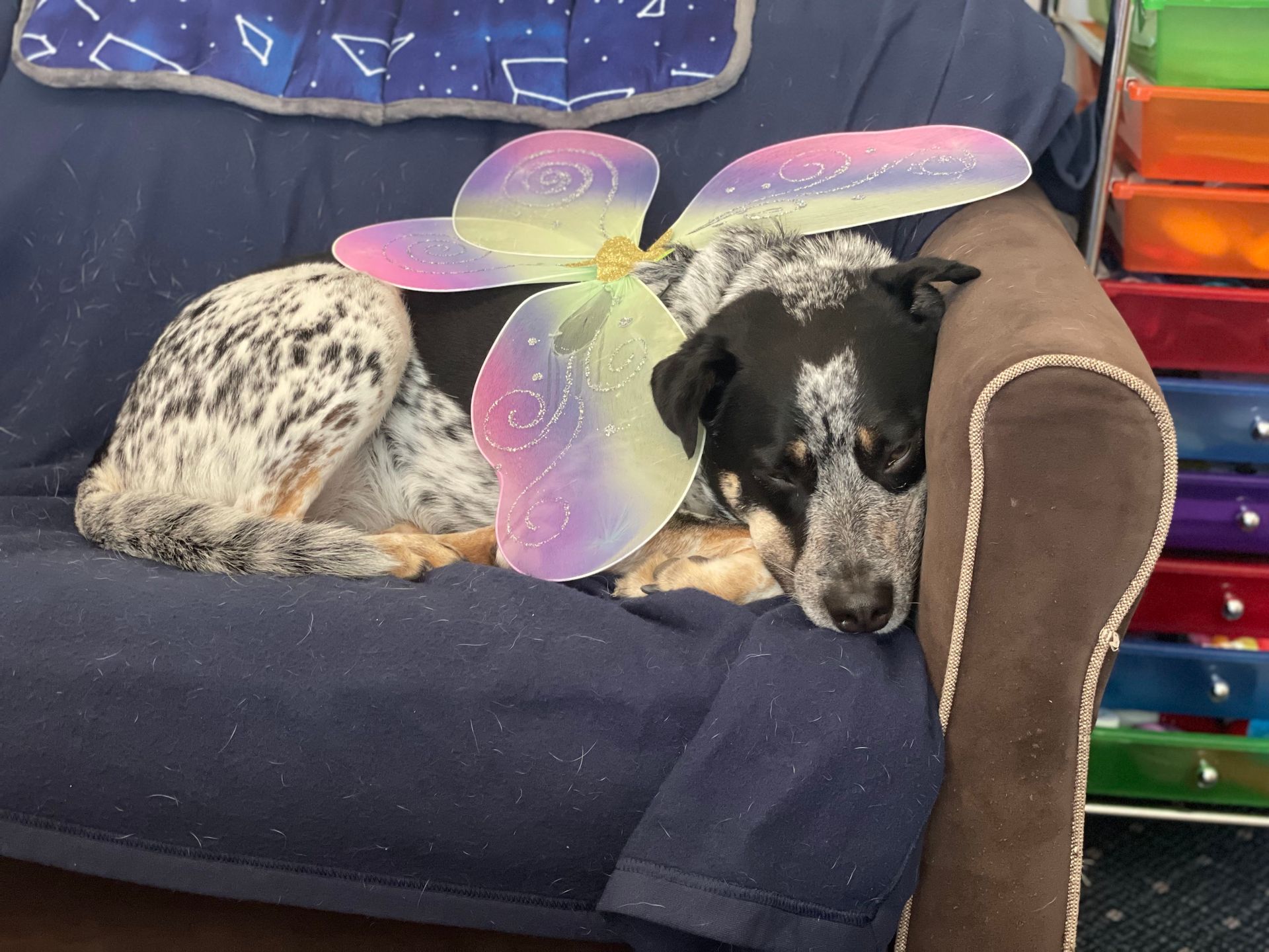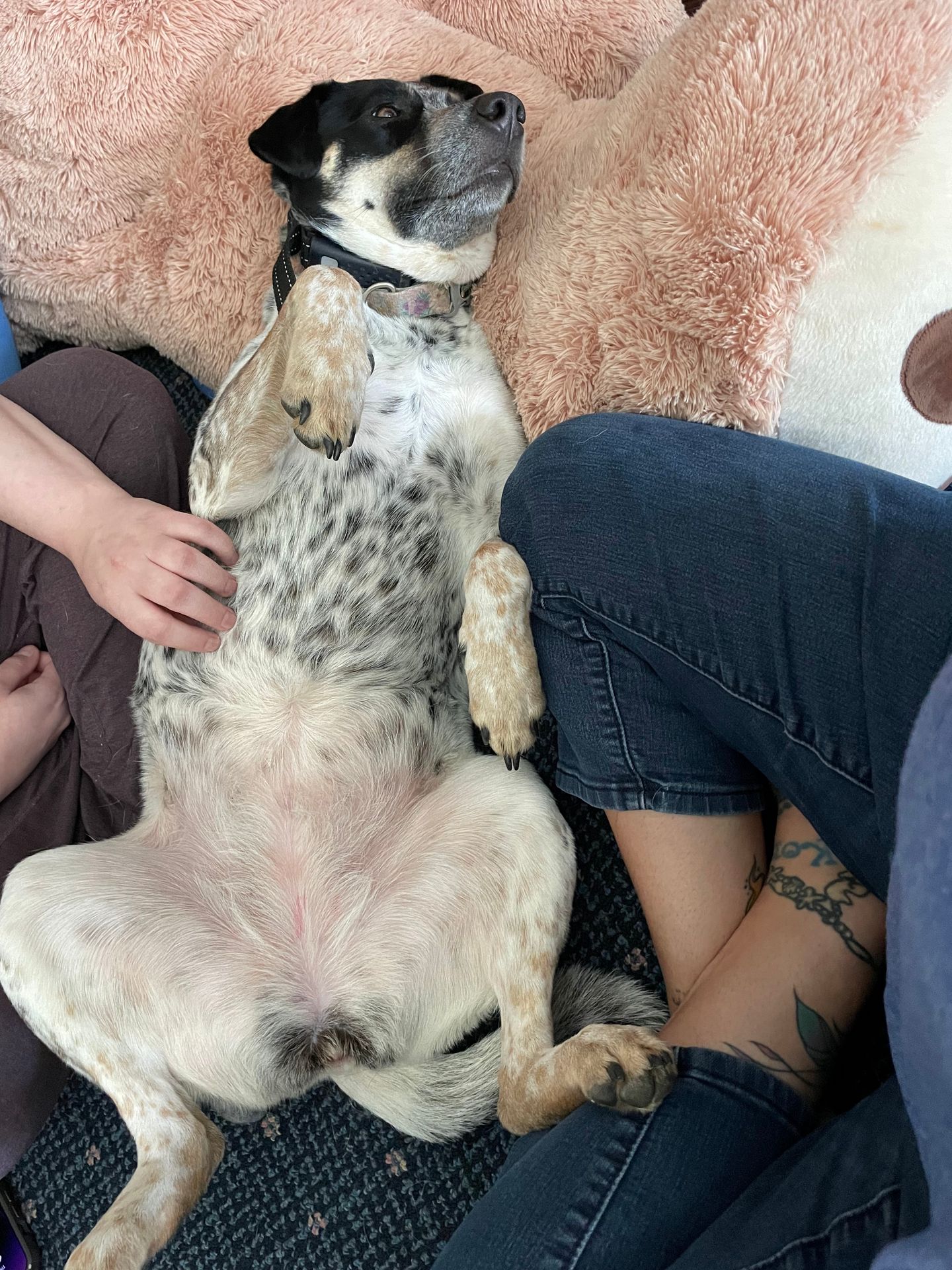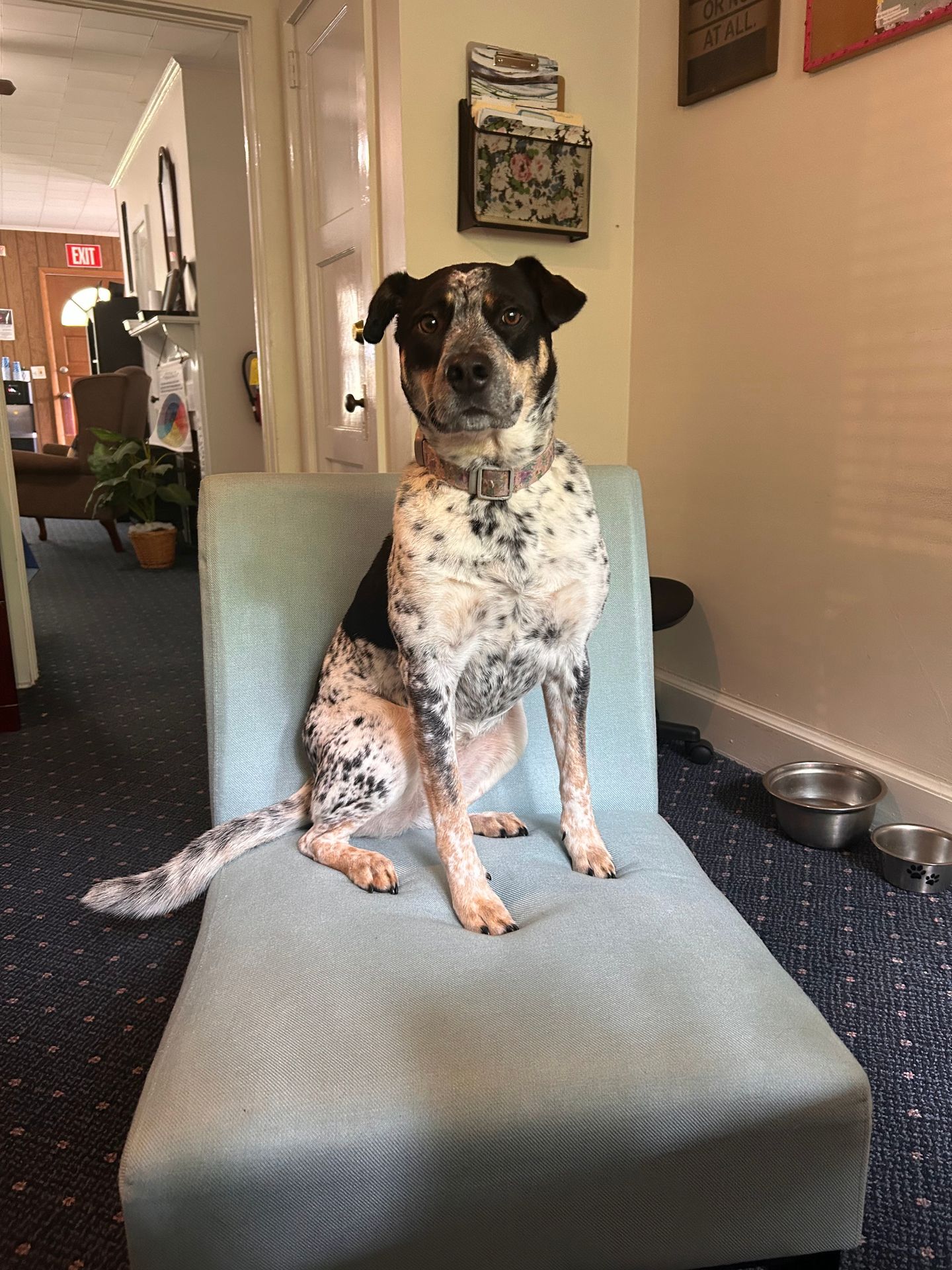 Macy is a pointer/heeler and loves to petting, belly rubs, and back/butt scratches. She enjoys letting people know when she ready for you to throw a ball by barking. She enjoys pets, laying on you and overall providing you emotional support.